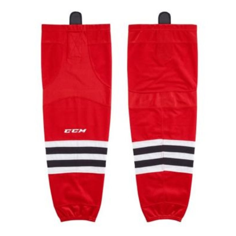 CCM included two velcro tabs that connect to the jock’s velcro, keeping the socks in place without needing sock tape or an extra garter belt. Pair with the CCM 8000 Jersey for a pro look!