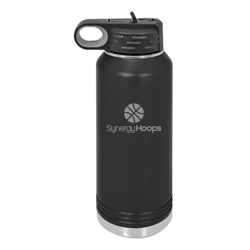 Synergy Hoops Water Bottles w/ laser-engraved logo.