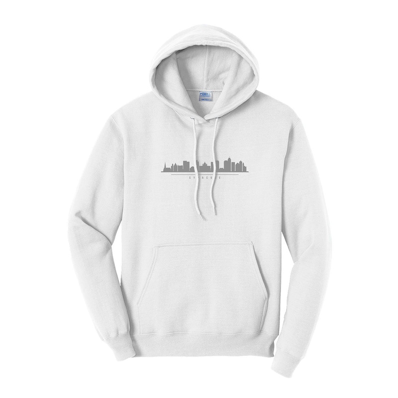 Syracuse Skyline Hoodies in black, white, gray, and red!