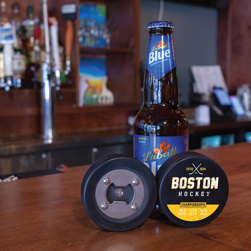 The combination of hockey and beer is hard to improve on but The PuckOpenerTM brings the pairing to a whole new level. It’s a bottle opener made from a REAL hockey puck. Naturally sized to fit in your hand, its a must have whether youre celebrating a win or drowning your sorrows after a loss.