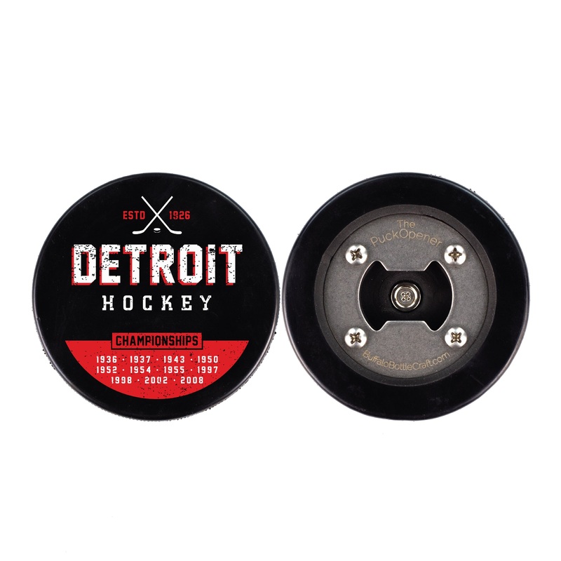 The combination of hockey and beer is hard to improve on but The PuckOpenerTM brings the pairing to a whole new level. It’s a bottle opener made from a REAL hockey puck. Naturally sized to fit in your hand, its a must have whether youre celebrating a win or drowning your sorrows after a loss.