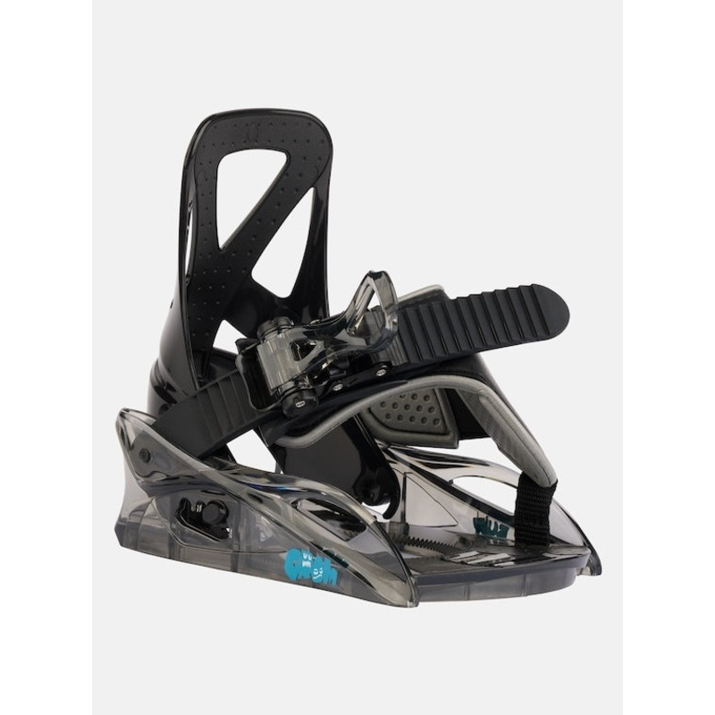 The toddlers’ Burton Mini Grom Disc bindings let even the youngest riders enjoy the freedom of strapping in and cruising all on their own. Designed in collaboration with Burton employees and their kids, they feature a single oversize, mitten-friendly buckle and strap design for easy entry and exit. Their lightweight, soft-flexing design adds to the ease of use.