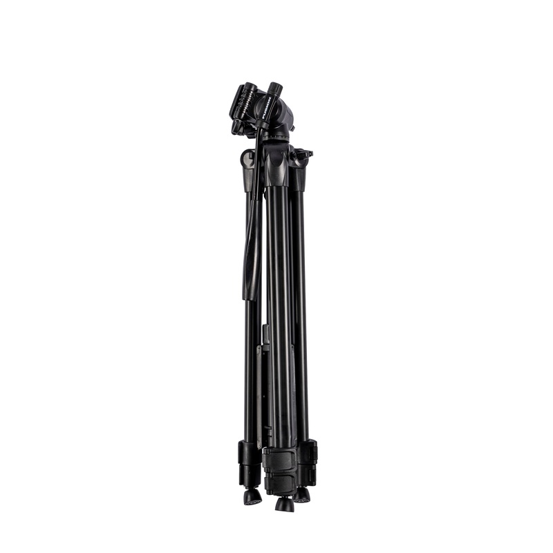 The 3-tiered extendable legs and center column system reaches a full height of 61.0″ and features sturdy self-leveling rubber feet, large, easy-to-set flip-lever locks, and a torsion-resistant center spread brace for added support. The geared center column gives the advantage of controlling height for precise shots without readjusting the tripod legs.