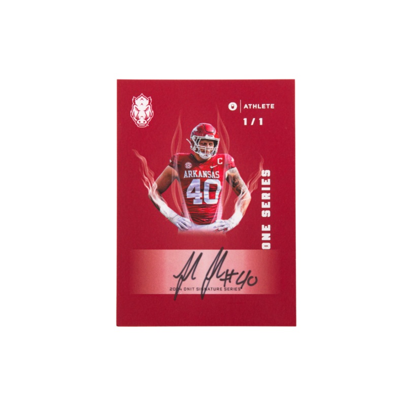 Officially licensed Arkansas Razorbacks 2024 football trading cards team set.Each pack contains 14 cards with a mix of base, parallel, and other rare specialty insert chase cards! No player is guaranteed and all the player-autographed cards are on-card autos.