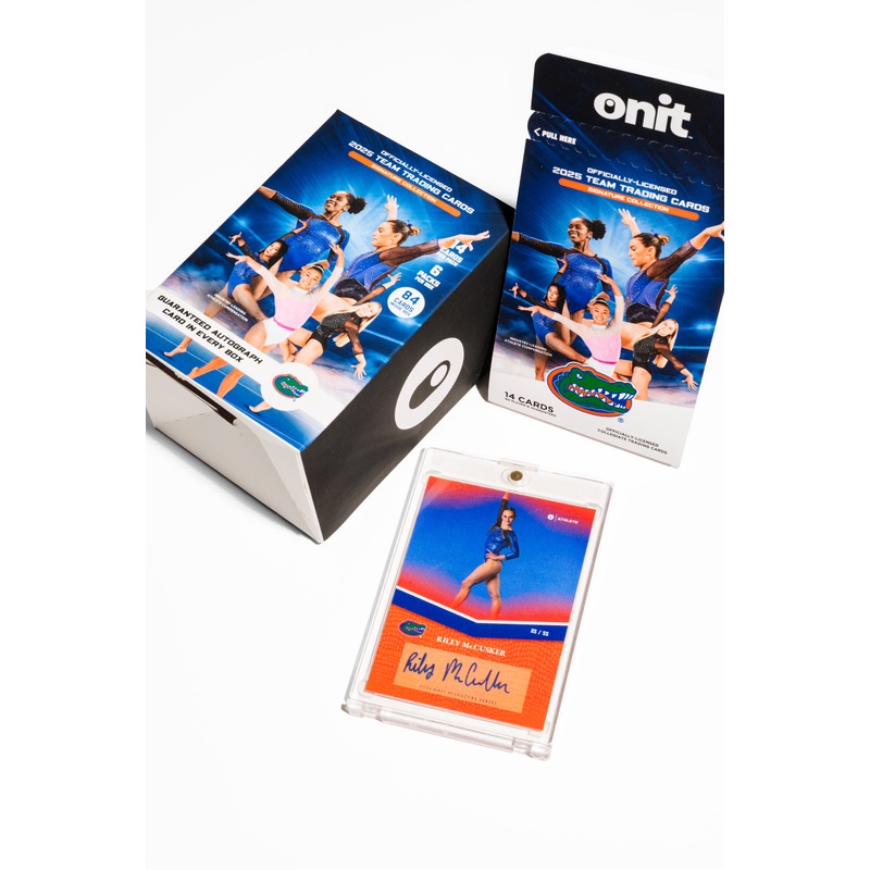 The platinum box contains six packs of officially licensed Florida Gators 2024 Women’s Gymnastics trading cards from the team set. Each pack includes 14 cards featuring a mix of base cards, parallels, and rare specialty insert chase cards! One of the packs includes a guaranteed autographed card.