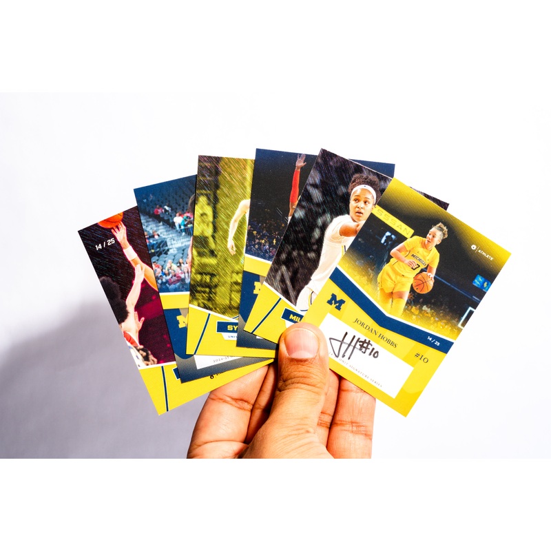 • Officially licensed 2024-25 Michigan Wolverines Women’s Hoops NIL team trading cards set