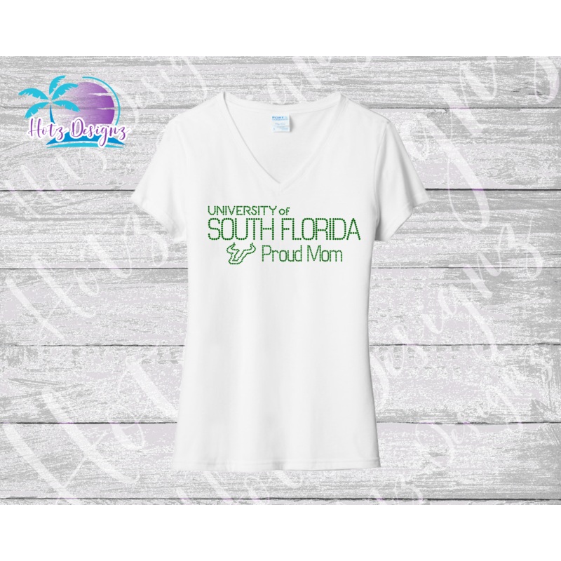 Super soft, lightweight and comfy Port & Co. v-neck tees are embellished with a rhinestone design that is sure to grab attention.