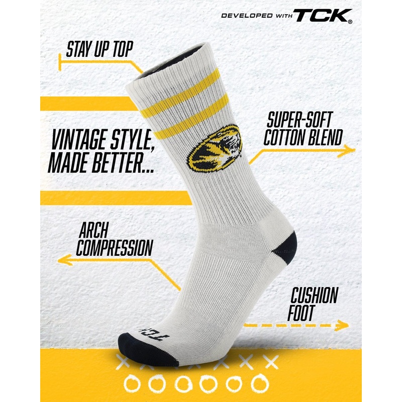 - Stylish, Vintage College Socks: Show off your Missouri Tigers pride with our retro-inspired socks for women and men. Perfect for fans who want to combine style with team spirit.