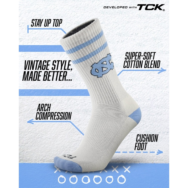 - Proudly Made in the USA: TCK Vintage NCAA Socks are proudly designed and manufactured in North Carolina, supporting American jobs and ensuring top-tier quality and craftsmanship.