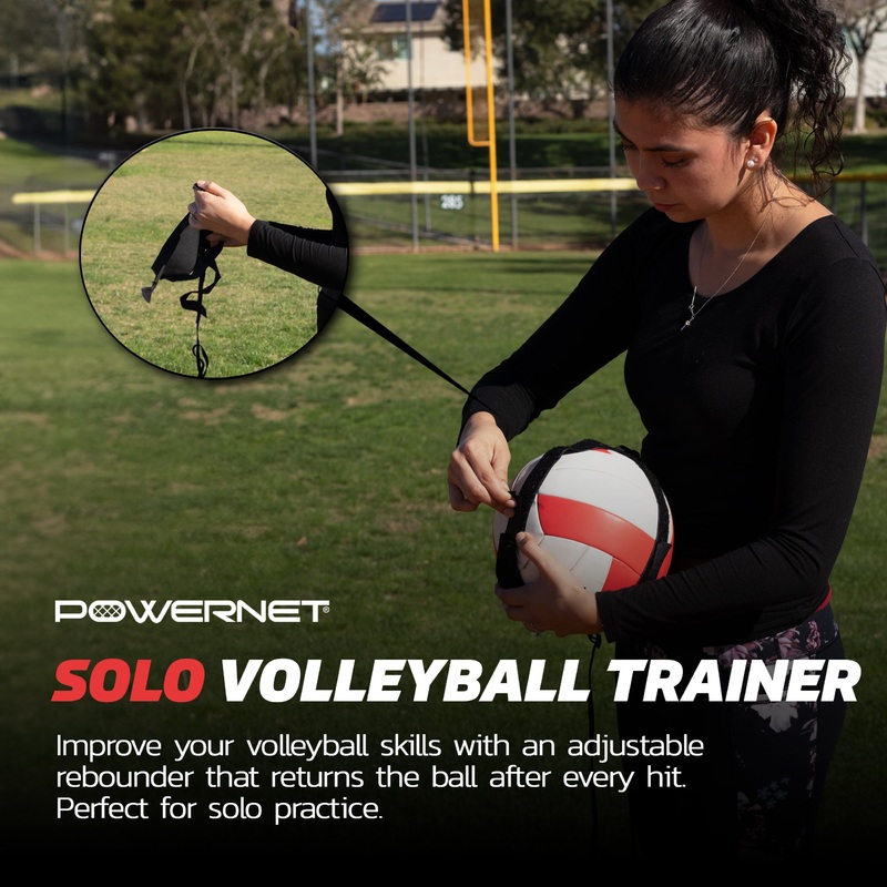 - VOLLEYBALL REBOUNDER: PowerNet’s Volleyball Solo Trainer allows athletes to work independently on improving technique and volleyball skills. The adjustable trainer has a flexible cord that will guide the volleyball back after each swing