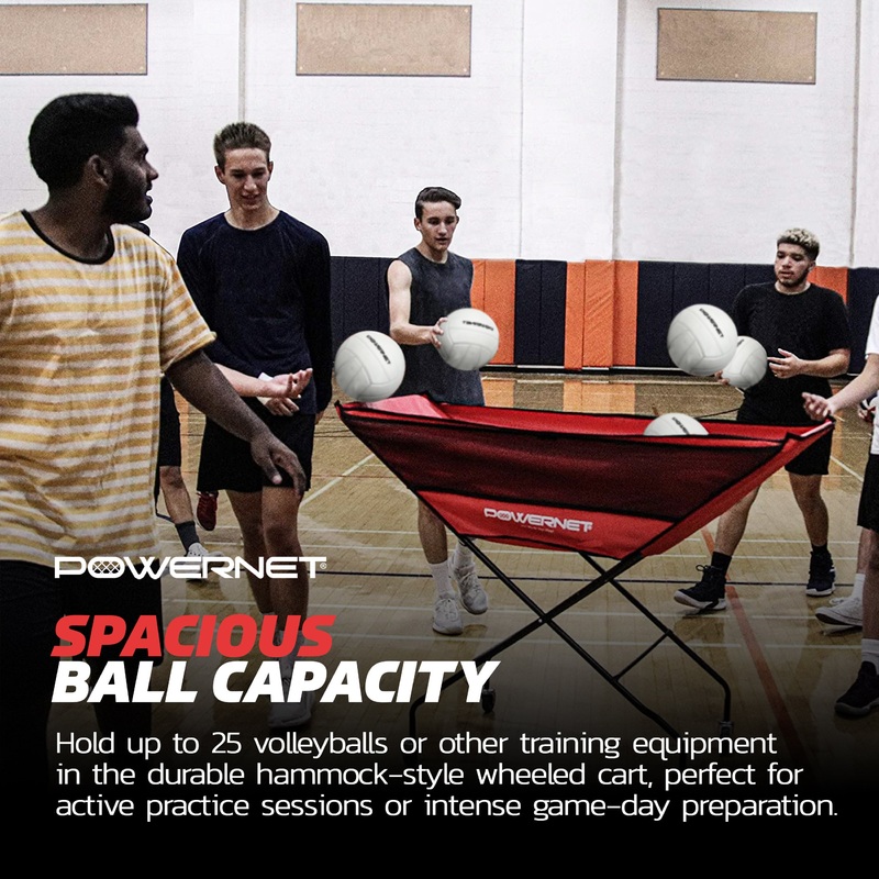 - HAMMOCK-STYLE BALL CART: PowerNets Volleyball Wheeled Cart features a collapsible, hammock-style basket perfect for volleyball training. This portable storage solution is an ideal volleyball practice equipment for people who needs reliable sports gear for smooth-running practice sessions and games