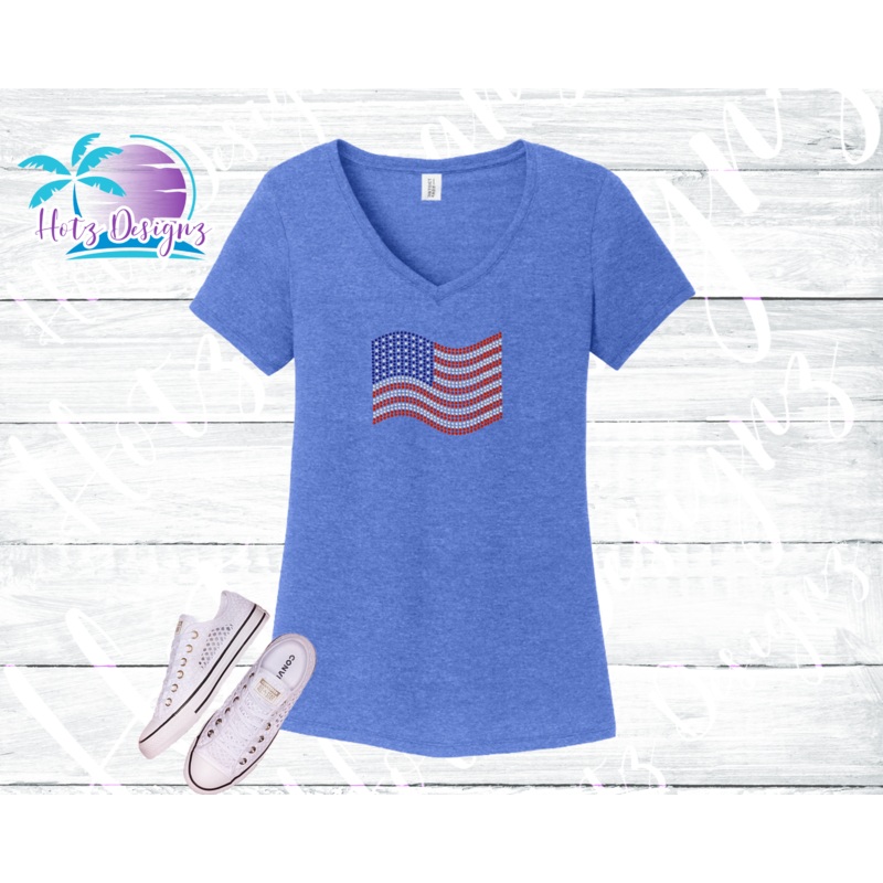 Wavy American Flag Rhinestone Tank Top / Shirt