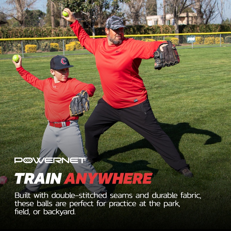• PORTABLE: Take your training balls on the go and set up practice in any backyard, park or field. The weighted baseballs are constructed with double-stitched seams and durable fabric for anywhere, anytime fun