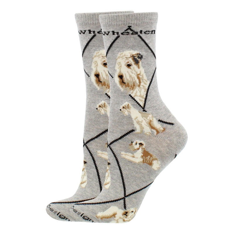 - PERFECT FOR DOG LOVERS – The Soft Coated Wheaten Terrier is always alert and hardworking. These dogs are sure to melt your heart. Show that bond in the Wheel House Designs signature crew sock that features a Wheaten Terrier design.