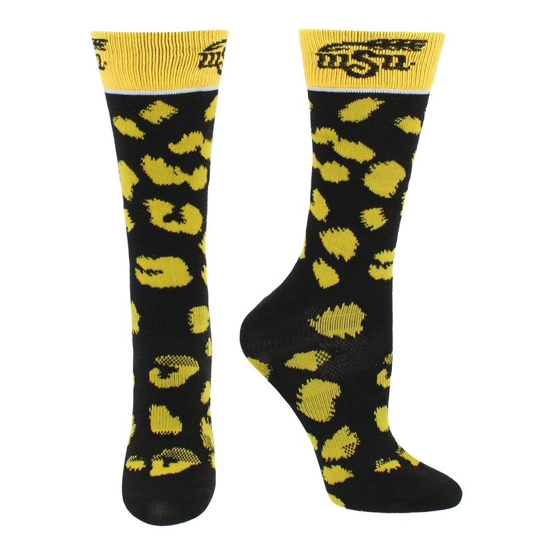 • COMFORT AND BREATHABILITY: These premium quality Wichita State Shockers leopard print casual socks provide soft comfort. Moisture management technology pulls moisture and sweat away from skin.