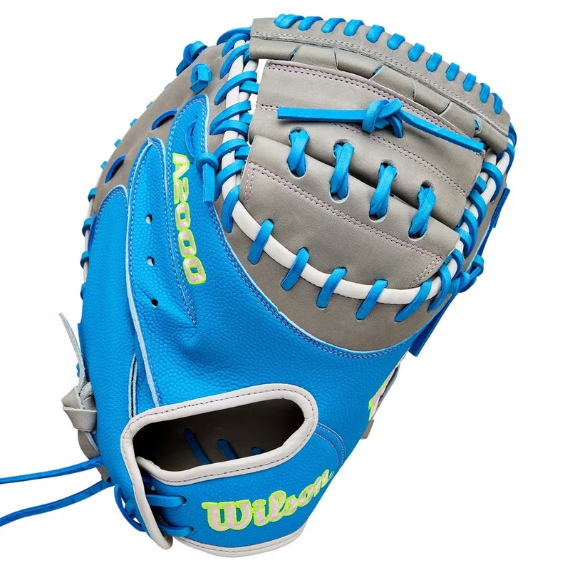 The Wilson A2000 FPCM23 SuperSkin 34″ Fastpitch Softball Catcher’s Mitt is a top choice for serious catchers, offering a combination of durability and comfort. Featuring the distinctive FPCM23SS glove pattern, this mitt showcases a stylish sky blue and grey colorway, complemented by a closed web design for optimal performance behind the plate. Crafted with Pro Stock Leather and enhanced with SuperSkin, this mitt is twice as strong as regular leather, ensuring longevity and resilience. The conventional open back and adjustable drawstring closure provide a custom fit, while the Dri-Lex wrist lining keeps your hand dry and comfortable. Additionally, the flat finger binding offers a more comfortable feel, making this mitt an essential tool for any dedicated catcher.