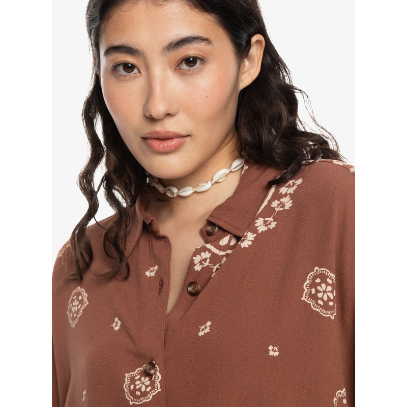 Retro surf style with a modern twist, ROXY’s Beach Nostalgia Woven Shirt is made of a mid-weight viscose ecovera crepe fabric, with a loose boxy fit, collar neck, recycled tortoise buttons, and pre-rolled sleeves for a laid-back touch.