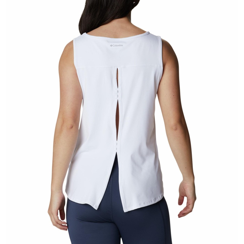 With moisture-wicking fabric and a back vent, this sleeveless top is a warm-weather staple, offering style and comfort.