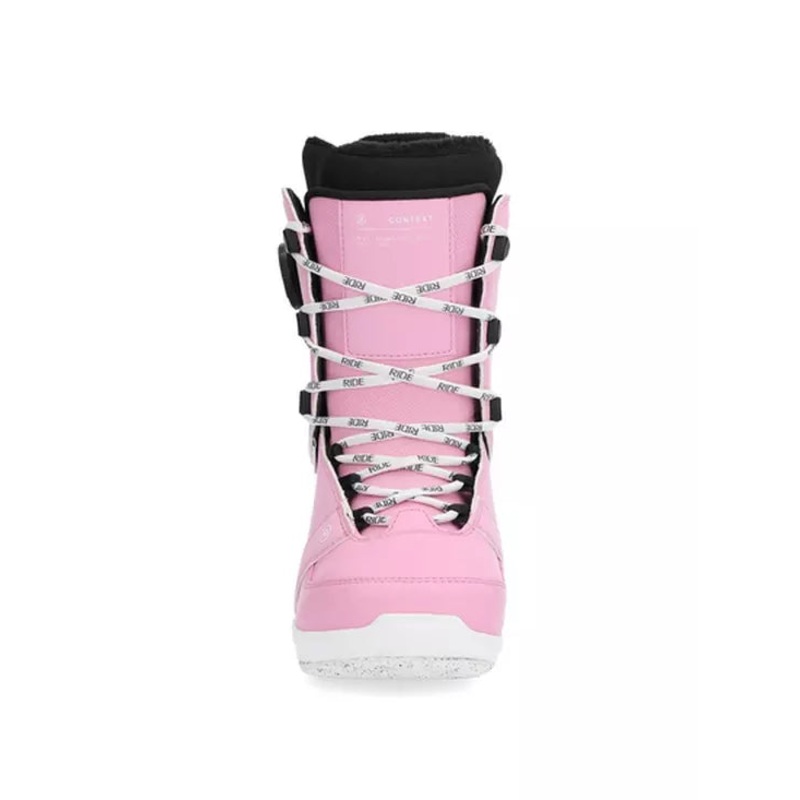 The Context is a high-end women’s lace snowboard boot. The traditional lacing system gives the rider the ability to lace their boot exactly how they want it. Fitted with Intuition Mobile Wrap Liner and mixed with a traditional lace and our BOA powered Tongue Tied Fit System, its snug and comfort at the highest level. Tongue Tied delivers a secure fit in the ankle and eliminates the need for a traditional harness. C.A.T. technology allows for a custom fit in the calf zone for increased comfort. The Context is designed as a stiffer flexing snowboard boot that is as at home in the park as it is on a powder day. The Zig-Zag Flex Sole combines rubber with a +Slime Midsole for durable traction and comfort while internal shank adds support. The Context is designed as a stiffer flexing freestyle snowboard boot.