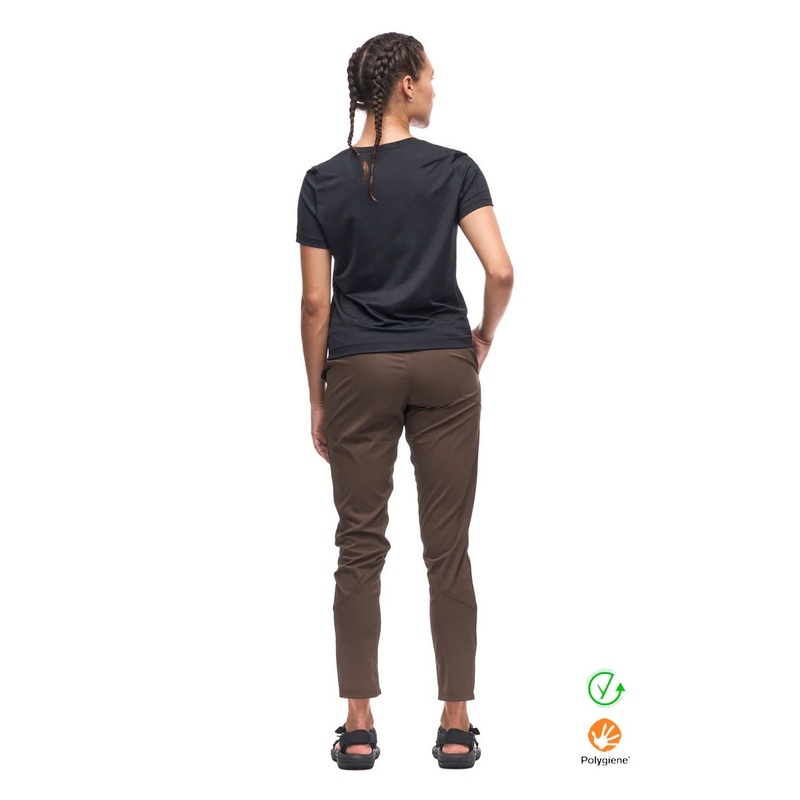 The v-neck t-shirt with tie hem Diporto is made of Quick Dry Knit, a light mesh fabric with a Polygiene finish. Polygiene permanent odor control stops growth of odor-causing bacteria on fabrics, so you can wear it more and wash it less. It is our most fast-drying fabric. You can tie a knot at front, which can give you a more fashionable look while remaining useful for your outdoor activities. These features make this top versatile, great for hiking, travel and various outdoor activities. Made from GRS-certified recycled polyester.