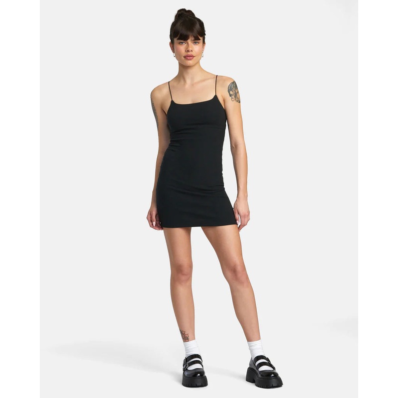 Make a bold statement with the Fey Dress from our RVCA Women’s Selects Collection: a fitted mini dress crafted from a ribbed knit fabric, featuring a scoop neckline, skinny elastic straps, and a built-in shelf bra for extra support.