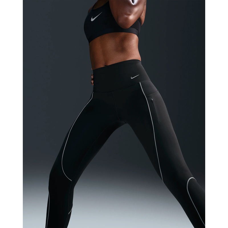 Push yourself day or night with the right balance of support and comfort in our Nike Go leggings. Their sleek, midweight InfinaLock fabric feels compressive and supportive in all the right places. Reflective piping brightens up your workout while multiple pockets let you carry everything you need.