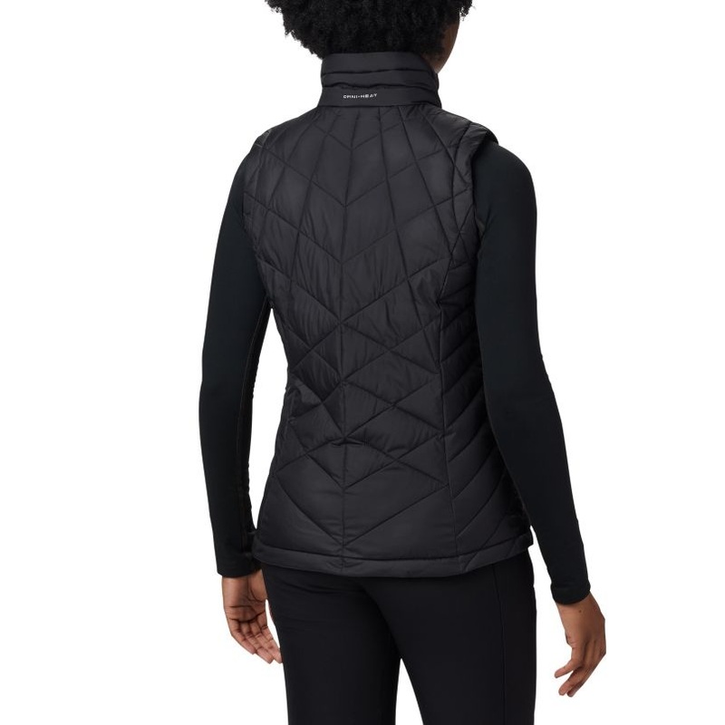 Heavenly warmth in a sleek, lightweight vest thatll keep you cozy on the move. The Columbia Heavenly women’s insulated sleeveless vest combines a light yet toasty synthetic down insulation and a thermal-reflective lining for bonus warmth without the bulk. The shell fabric resists wet weather, and the plush-lined collar provides a soft, cozy despite from the wind and chill.