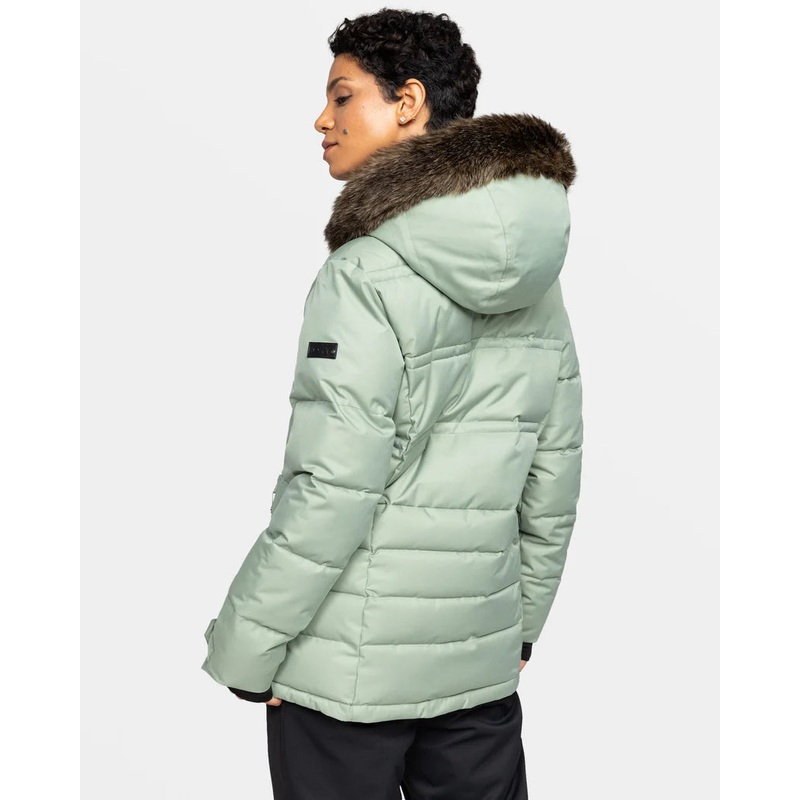 The ROXY Quinn Snow Jacket is a high-performance winter essential. Crafted from partially recycled material, this tailored jacket keeps you dry and warm with DryFlight waterproofing, PrimaLoft insulation, and innovative ROXY technologies. Adjustable features, faux fur hood, and pockets galore make it the ultimate companion for all your snowy adventures. Featured here in the Lily Pad colorway.