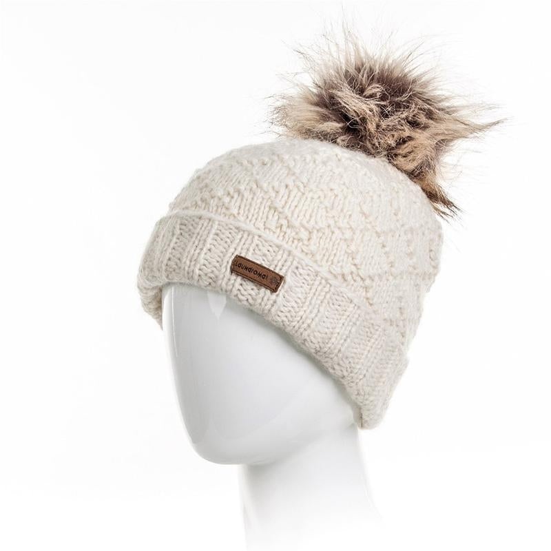 Undeniably feminine, the Tiffany Beanie comes in a pretty diamond-textured knit. An oversized faux-fur pompom makes this design extra chic, while a fleece-lined, fold-over band is added for practicality and extra warmth. Complete the look with matching Tiffany Mittens.