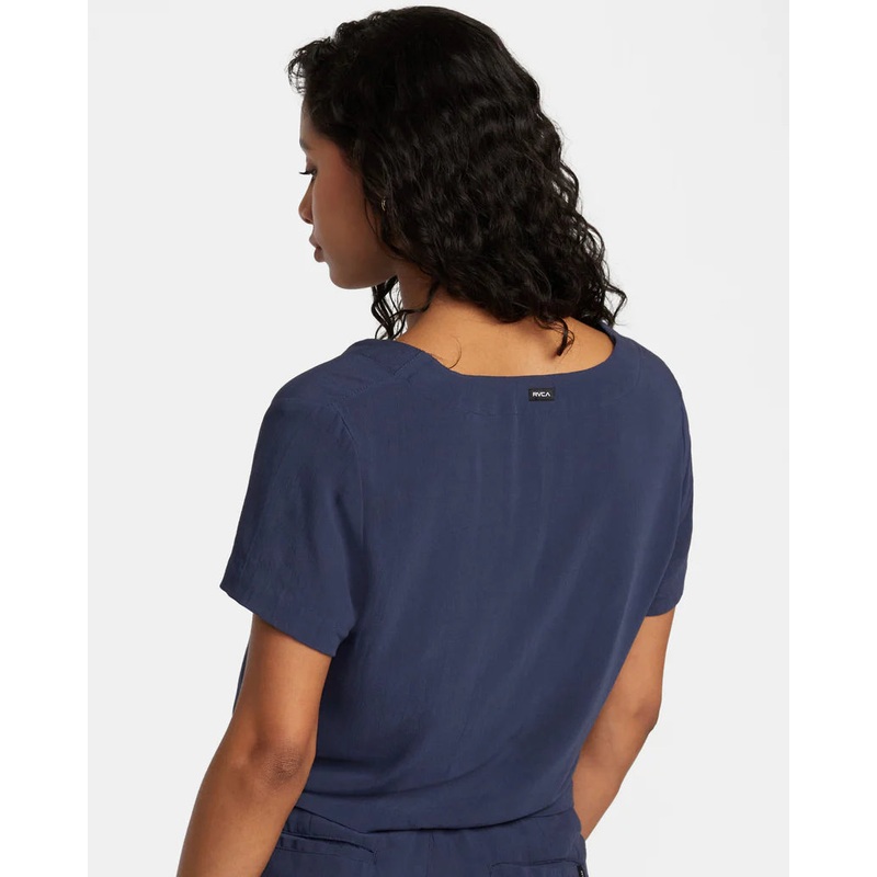 Modern and stylish, the RVCA Vista Top Woven Shirt is crafted from eco-conscious Livaeco viscose crepe fabric to keep it feeling airy and light. The flowy fit is styled with a W-neck, short sleeves, and a single shell button closure.
