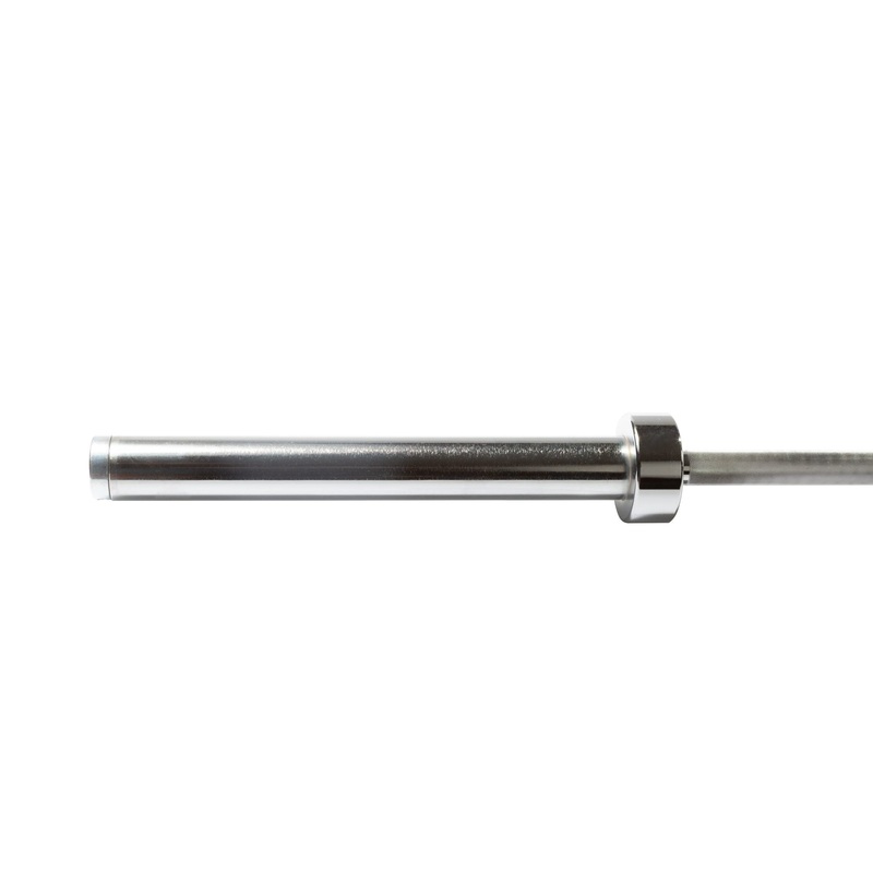 The YORK Elite Olympic Training Bar has a minimum tensile strength of 190,000 PSI after heat treating. This weight bar North American steel is used in the making of the bar. It is an excellent choice for Olympic Style movements. The Ferous Bushings ensure a smooth consistent rotation. The sleeve is secured on the bar using a bar end nut and spring pin. Sleeves are machined to a precise 1.975 diameter to accommodate 2 Olympic Plates. This bar is calibrated to Olympic specifications.