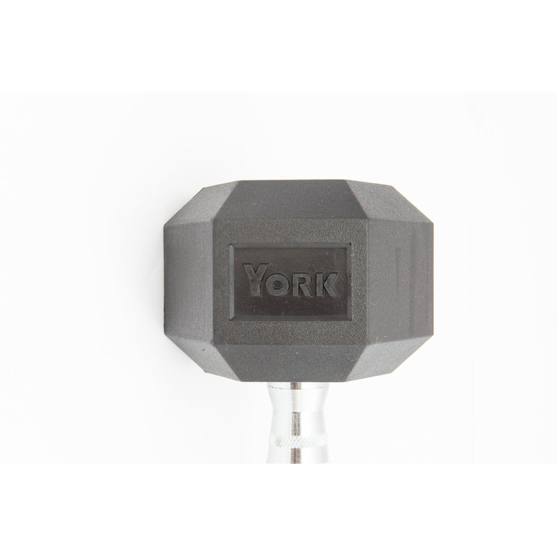The Rubber Hex Dumbbell features durable rubber-covered heads for increased safety and comfort. The rubber coating increases durability, protects flooring and equipment, enhances appearance, diminishes noise, and is easy to clean. The heads are permanently affixed to a thick solid steel shaft improving the strength of the head / handle joint. The knurled chrome handles are ergonomically contoured to fit comfortably in the palm of the user. Rubber Hex dumbbells are a great addition to any workout space.