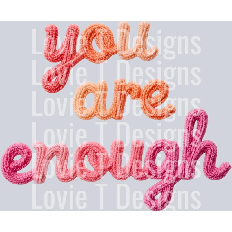Be the first to review “YOU ARE ENOUGH FAUX YARN|Pocket 4″(4.00in x 3.28in)|Infant 6″(6.00in x 4.93in)|Toddler 7″(7.00in x 5.75in)|Youth 8.5″(8.50in x 6.98in)|Adult 11″(11.00in x 9.03in)|Adult 12″(12.00in x 9.85in)|Oversized 15″ MAX(15.00in x 12.32in)”