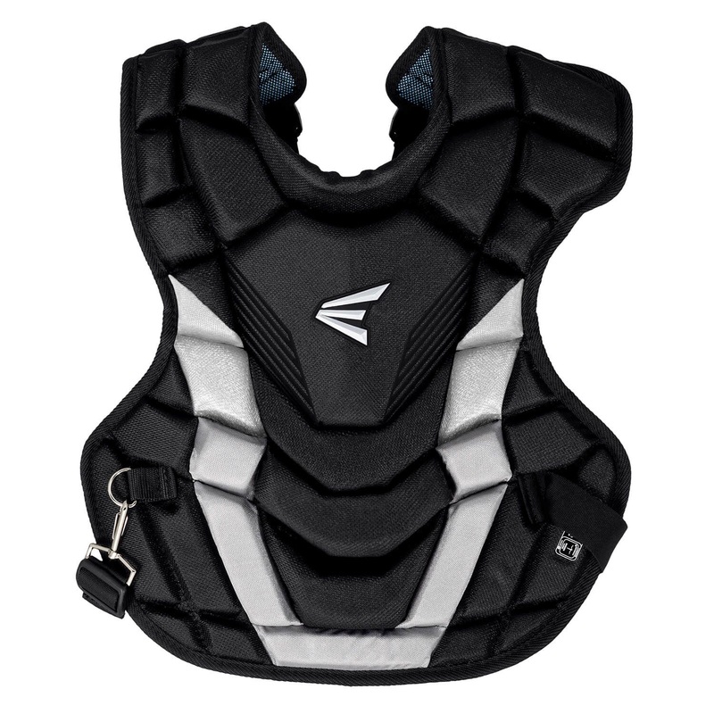 Eastons Gametime chest protector features integrated impact absorbing foam in the ab area, providing improved rebound control so blocked balls stay close, preventing runners from advancing. The chest protector is constructed with a one-sided steel inset waist clip, an adjustable shoulder cap, and a 4-point webbing strap system for a securely wrapped fit and easy adjustability. The Gametime chest protector is available in Adult, Intermediate and Youth sizes.