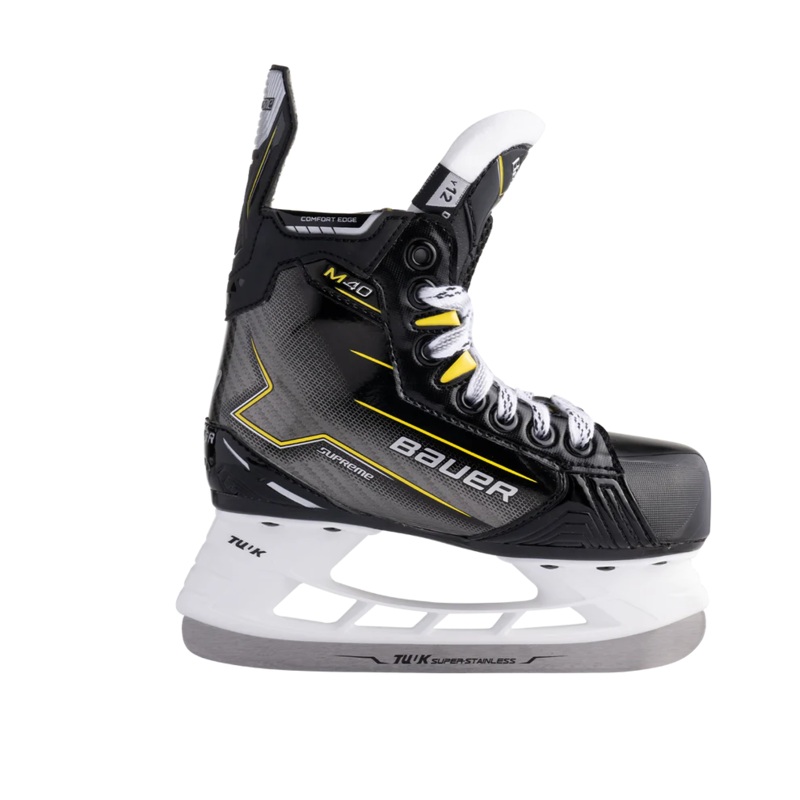 Top-tier performance at a top-tier value. The SUPREME M40 Junior Skate was engineered specifically for younger players focused on improving their skating. Packed with junior-specific tech, lightweight materials, and all-around comfort theyll love, the SUPREME M40 Junior Skate is the ideal companion in their journey to become a better hockey player.