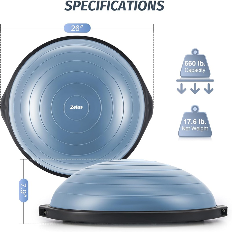 Build strength, balance, and stability with the ZELUS 25″ Balance Ball Trainer.