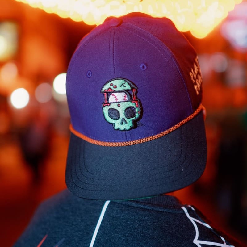 Step up to the plate with a spooky twist in the Zombie Hat from Plate Crates October 2025Monster Smash Collection! Featuring a neon green zombie skull chomping down on a baseball, this hat is built for players who love to bring attitude and edge to the game.